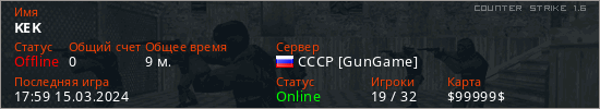 Играет на Counter Strike 1.6 сервере. Страна: РоссияПервый раз замечен 17:10 23.12.2023