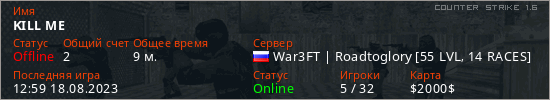 Играет на Counter Strike 1.6 сервере. Страна: РоссияПервый раз замечен 11:47 18.08.2023