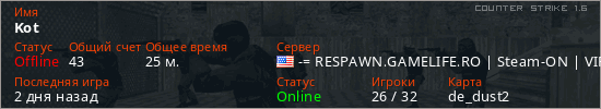 Играет на Counter Strike 1.6 сервере. Страна: СШАПервый раз замечен 16:59 25.01.2026