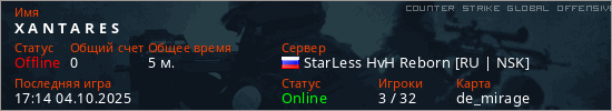 Играет на Counter Strike Global Offensive сервере. Страна: РоссияПервый раз замечен 17:10 04.10.2025