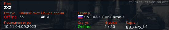 Играет на Counter Strike Source сервере. Страна: РоссияПервый раз замечен 21:50 28.08.2023