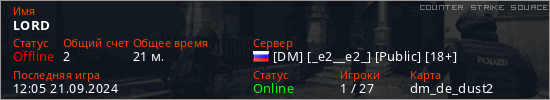 Играет на Counter Strike Source сервере. Страна: РоссияПервый раз замечен 20:01 18.11.2023