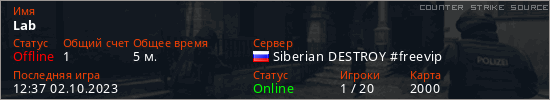 Играет на Counter Strike Source сервере. Страна: РоссияПервый раз замечен 12:31 02.10.2023