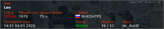 Играет на Counter Strike 1.6 сервере. Страна: РоссияПервый раз замечен 05:08 28.11.2019