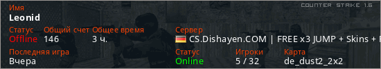 Последний раз был в сети Вчера Игрок с таким ником замечен на 16 серверах