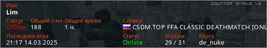 Последний раз был в сети 21:17 14.03.2025 Игрок с таким ником замечен на 9 серверах