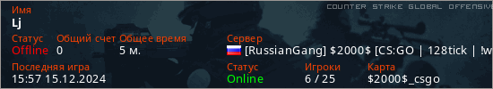 Играет на Counter Strike Global Offensive сервере. Страна: РоссияПервый раз замечен 15:53 15.12.2024