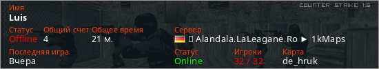 Последний раз был в сети Вчера Игрок с таким ником замечен на 17 серверах