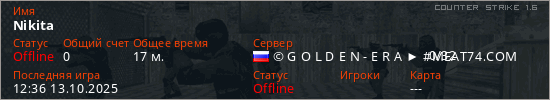 Играет на Counter Strike 1.6 сервере. Страна: РоссияПервый раз замечен 14:47 30.06.2024