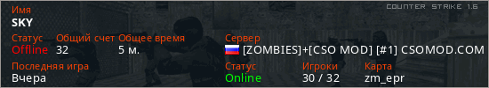 Последний раз был в сети Вчера Игрок с таким ником замечен на 32 серверах