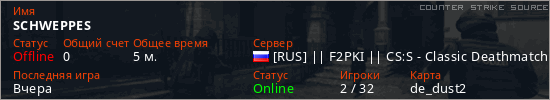 Играет на Counter Strike Source сервере. Страна: РоссияПервый раз замечен 16:42 20.01.2026