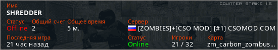 Последний раз был в сети 20 часов назад Игрок с таким ником замечен на 5 серверах