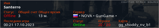 Играет на Counter Strike Source сервере. Страна: РоссияПервый раз замечен 21:21 15.10.2023