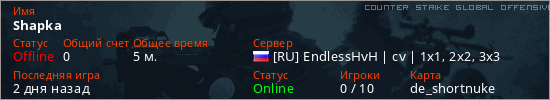 Играет на Counter Strike Global Offensive сервере. Страна: РоссияПервый раз замечен 09:51 19.12.2025