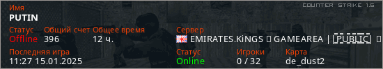Играет на Counter Strike 1.6 сервере. Страна: ВеликобританияПервый раз замечен 10:24 27.01.2021