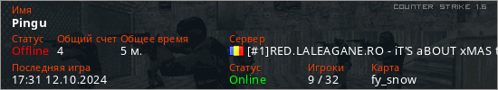 Играет на Counter Strike 1.6 сервере. Страна: РумынияПервый раз замечен 17:17 12.10.2024