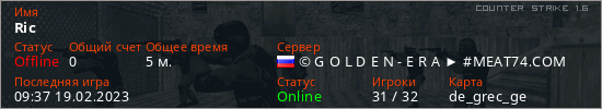 Играет на Counter Strike 1.6 сервере. Страна: РоссияПервый раз замечен 09:35 19.02.2023