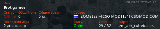 Общая информация игрока
