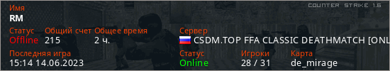 Играет на Counter Strike 1.6 сервере. Страна: РоссияПервый раз замечен 21:46 05.06.2023