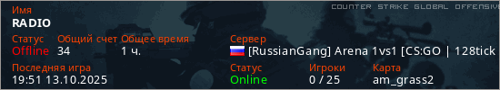 Играет на Counter Strike Global Offensive сервере. Страна: РоссияПервый раз замечен 19:48 28.09.2025