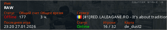 Играет на Counter Strike 1.6 сервере. Страна: РумынияПервый раз замечен 00:05 23.01.2023