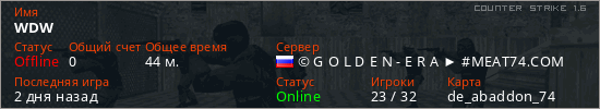 Играет на Counter Strike 1.6 сервере. Страна: РоссияПервый раз замечен 07:09 07.02.2026