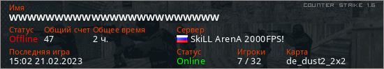 Играет на Counter Strike 1.6 сервере. Страна: РоссияПервый раз замечен 15:50 20.02.2023