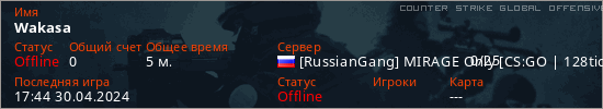 Играет на Counter Strike Global Offensive сервере. Страна: РоссияПервый раз замечен 17:40 30.04.2024