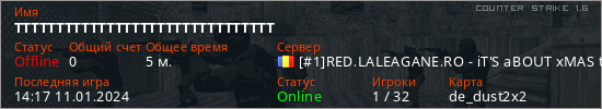 Играет на Counter Strike 1.6 сервере. Страна: РумынияПервый раз замечен 14:13 11.01.2024