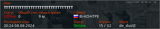 Играет на Counter Strike 1.6 сервере. Страна: РоссияПервый раз замечен 10:59 19.05.2023
