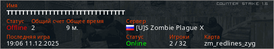 Последний раз был в сети 19:06 11.12.2025 Игрок с таким ником замечен на 11 серверах