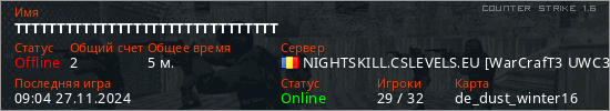 Играет на Counter Strike 1.6 сервере. Страна: РумынияПервый раз замечен 09:02 27.11.2024