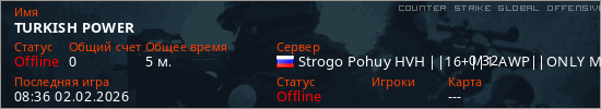 Играет на Counter Strike Global Offensive сервере. Страна: РоссияПервый раз замечен 08:20 02.02.2026
