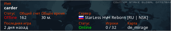 Играет на Counter Strike Global Offensive сервере. Страна: РоссияПервый раз замечен 11:31 31.01.2026