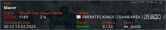 Последний раз был в сети 02:12 13.02.2025 Игрок с таким ником замечен на 12 серверах
