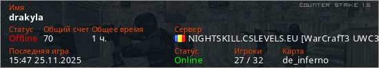 Играет на Counter Strike 1.6 сервере. Страна: РумынияПервый раз замечен 04:44 25.11.2025