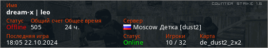 Играет на Counter Strike 1.6 сервере. Страна: РоссияПервый раз замечен 08:39 07.08.2020