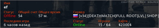 Играет на Counter Strike Source сервере. Страна: РоссияПервый раз замечен 22:46 26.10.2023