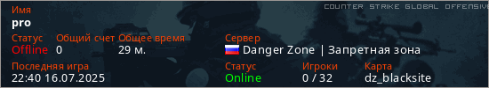 Играет на Counter Strike Global Offensive сервере. Страна: РоссияПервый раз замечен 15:54 13.07.2025