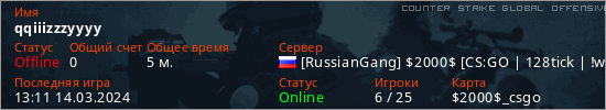 Играет на Counter Strike Global Offensive сервере. Страна: РоссияПервый раз замечен 12:52 14.03.2024