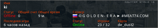 Играет на Counter Strike 1.6 сервере. Страна: РоссияПервый раз замечен 09:25 11.01.2024