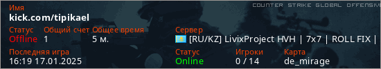 Играет на Counter Strike Global Offensive сервере. Страна: КазахстанПервый раз замечен 16:13 17.01.2025