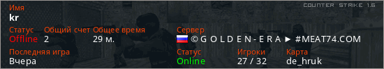 Играет на Counter Strike 1.6 сервере. Страна: РоссияПервый раз замечен 20:23 01.09.2023