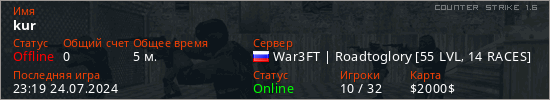 Играет на Counter Strike 1.6 сервере. Страна: РоссияПервый раз замечен 23:17 24.07.2024