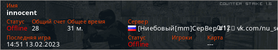 Последний раз был в сети 14:51 13.02.2023 Игрок с таким ником замечен на 15 серверах