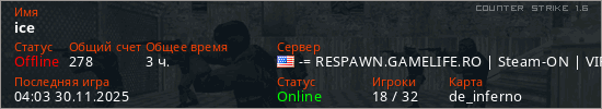 Играет на Counter Strike 1.6 сервере. Страна: СШАПервый раз замечен 22:22 04.07.2025