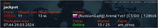 Играет на Counter Strike Global Offensive сервере. Страна: РоссияПервый раз замечен 08:11 27.03.2024