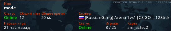 Играет на Counter Strike Global Offensive сервере. Страна: РоссияПервый раз замечен 01:33 20.12.2025