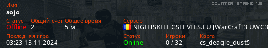 Последний раз был в сети 03:23 13.11.2024 Игрок с таким ником замечен на 5 серверах