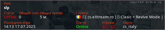 Играет на Counter Strike 1.6 сервере. Страна: РумынияПервый раз замечен 14:07 17.07.2025